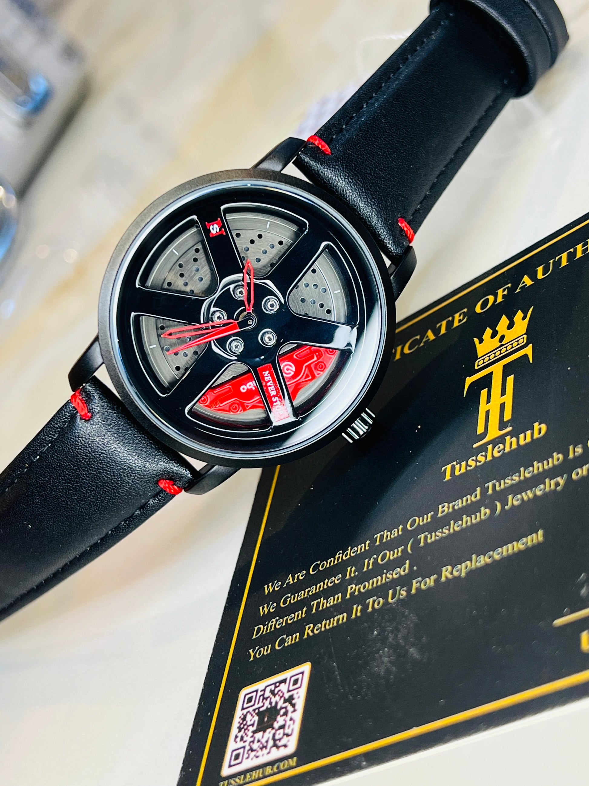 Black Red Leather Strapped Spinner NS Watch